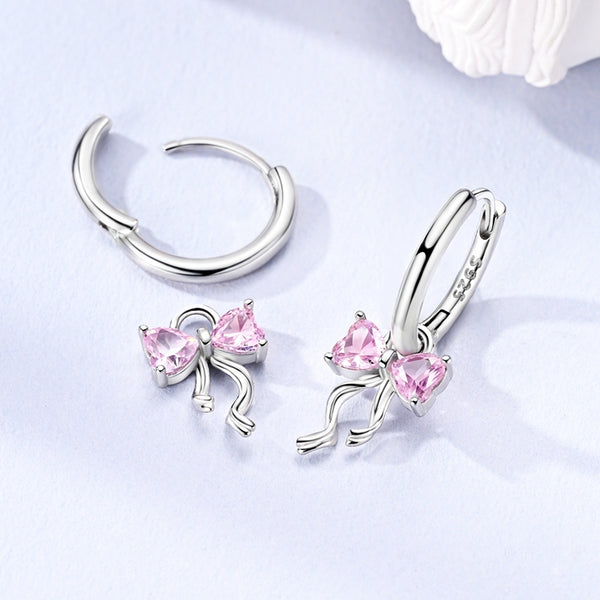 Com um delicado pingente em formato de laço adornado por zircônias rosa em lapidação coração, esses brincos traduzem leveza e romantismo. O detalhe das fitas alongadas cria movimento suave, trazendo um toque gracioso e feminino a cada gesto.
