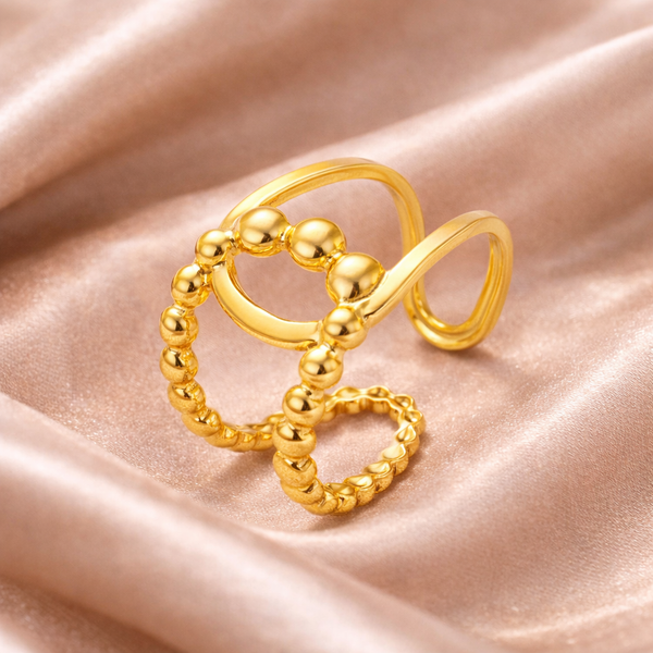 O Anel Ajustável Dourado Nó em Aço Inoxidável Romanely é a peça ideal para quem procura um acessório elegante com significado. Com um design em forma de nó, simboliza união, ligação e continuidade, tornando-se perfeito para complementar qualquer look com um toque sofisticado.