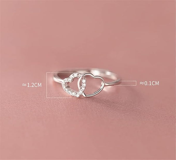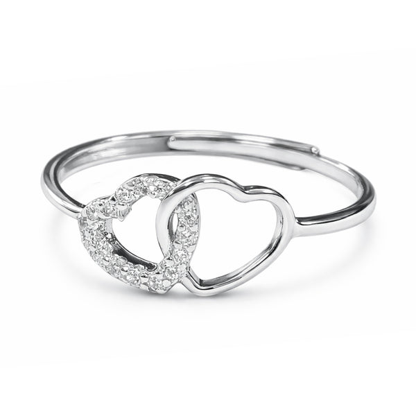 Anillo Corazón Entrelazado Ajustable en Plata 925 con Circonitas: Brillo y amor en perfecta armonía