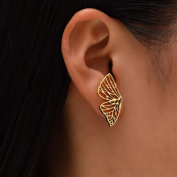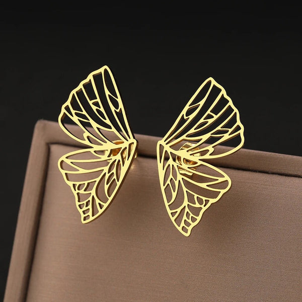 Pendientes de alas de mariposa de acero inoxidable dorado: ¡Un accesorio para mujeres amantes de la belleza y la calidad!