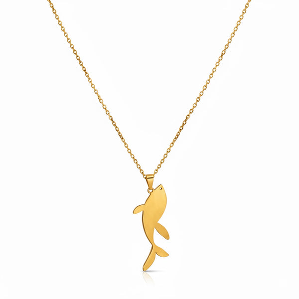 O Colar Dourado com Pingente Peixe em Aço Inoxidável Romanely é a escolha ideal para quem procura um acessório elegante com um design moderno e simbólico. Com um pendente em formato de peixe de acabamento liso e polido, esta peça destaca-se pela sua estética minimalista, sendo perfeita para complementar qualquer look do dia a dia ou ocasiões especiais.